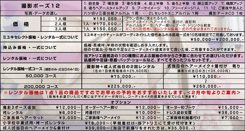 ブライダルの現場で活躍するデザイナー・ヘアメイクアップアーティスト・着付け師・フラワーコーディネーター・カメラマンによる20歳の記念に相応しい、質の高い撮影・式当日のお支度をプロデュースいたします。